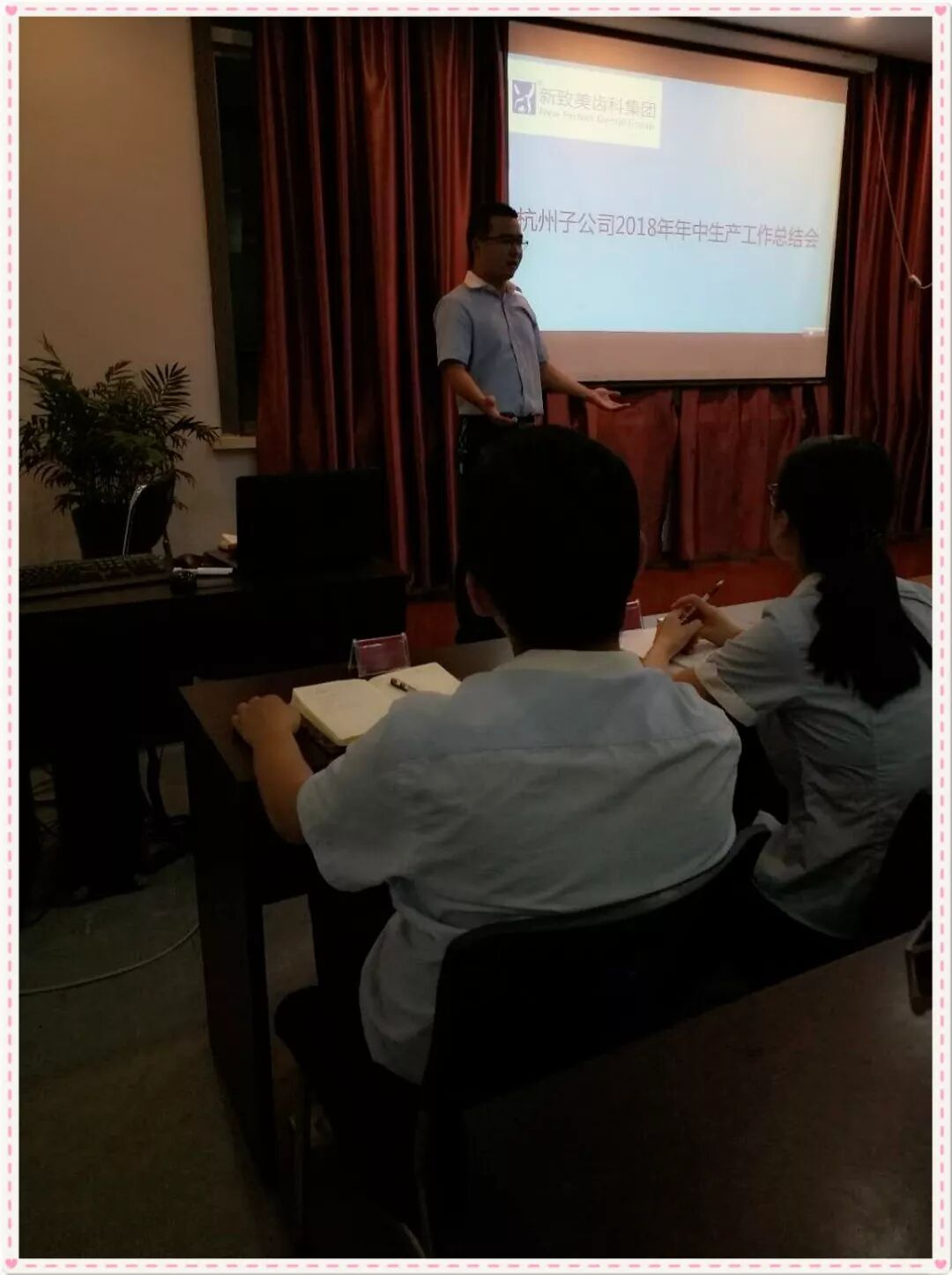 2018年中生产总结暨下半年工作部署会议 ——新致美杭州子公司 新致美齿科集团杭州子公司在7.25号晚举办了2018年中生产总结暨下半年工作部署会议,此次会议主要由生产部与质技科对上半年工作的一个总结与下半年该如何去围绕公司的总目标去开展工作,最后由朱总来对公司上半年整个现状进行分析与总结。 此次会议的主要目的是总结上半年公司存在的问题,查找原因并加以改进,确保2018年公司总目标的实现。 朱总作最后总结 分析公司现状及该如何去完成公司的总目标 时间在不知不觉中两个小时已经过去了,通过徐主管、施总监及朱总的分享,相信我们学到很多,能更全面的认识自己的行业、认识公司,做牙齿是一份造福全人类社会的职业,因此我们要做好手中每一份牙齿,相信通过大家共同的努力新致美会越来越好!!!! 在牙路上,一切与牙无关,一切与人有关,不忘初心,筑梦前行,新致美人一直在学习的路上,相信新致美的明天会更好!